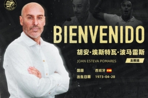 胡安·埃斯特瓦·波马雷斯,1973年出生于西班牙巴塞罗那,持有欧足联职业级教练证书,拥有横跨欧亚的丰富执教履历。其在球员时期曾效力于西甲球队西班牙人的青训队,并在西班牙国内联赛有长期踢球经历。在其执教生涯中,曾先后掌舵西班牙马翁竞技、康斯坦西亚、卡斯特利翁、欧罗巴、菲格雷斯等多家俱乐部,并积累了宝贵的亚洲执教经验,曾担任菲律宾联城足球俱乐部、香港晋峰足球会及中甲球队佛山南狮足球俱乐部的主教练,其执教风格以注重战术细节和阵型多变著称。