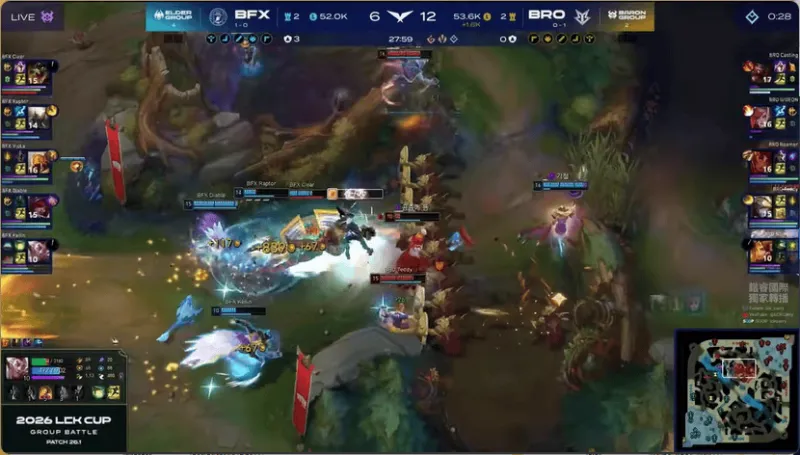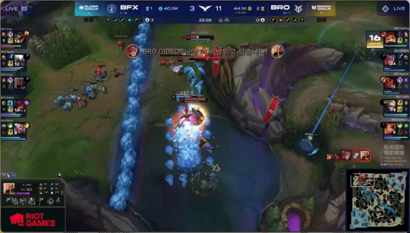 15分钟,BRO在河道附近被打出1换2,经济差距缩小了一些